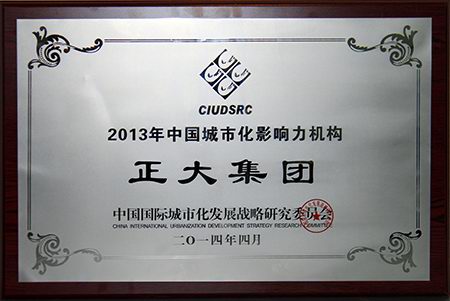 正大集团荣膺“2013年中国城市化影响力机构”荣誉称号