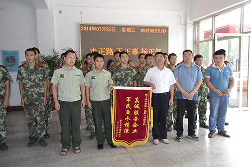 军民鱼水情,百姓记心间。2014年7月23日在“八一”建军节即将到来之际,wending问鼎官方在线入口副总经理田立文带领公司相关部门人员前往洛阳市西工区消防大队进行慰问,并向西工消防红山中队赠送“真诚服务企业,军民鱼水情深”的锦旗一面,以感谢两年来洛阳西工消防大队及红山中队对wending问鼎官方在线入口消防安全工作的全力支持和帮助。