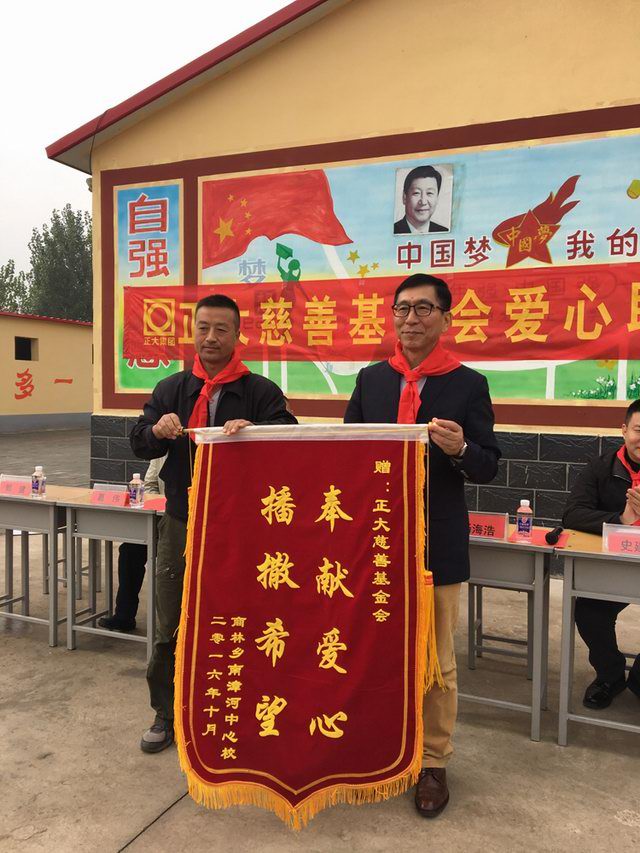 南漳河小学感谢正大慈善基金会的爱心善举,并赠送锦旗。