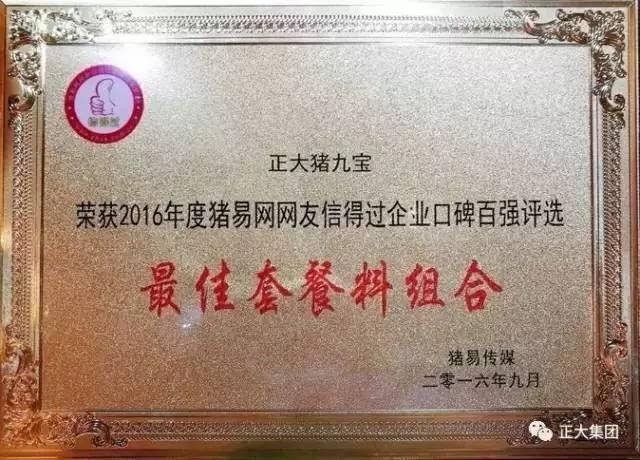▲正大猪九宝被猪易网网友评为2016年度“***佳套餐料组合”
